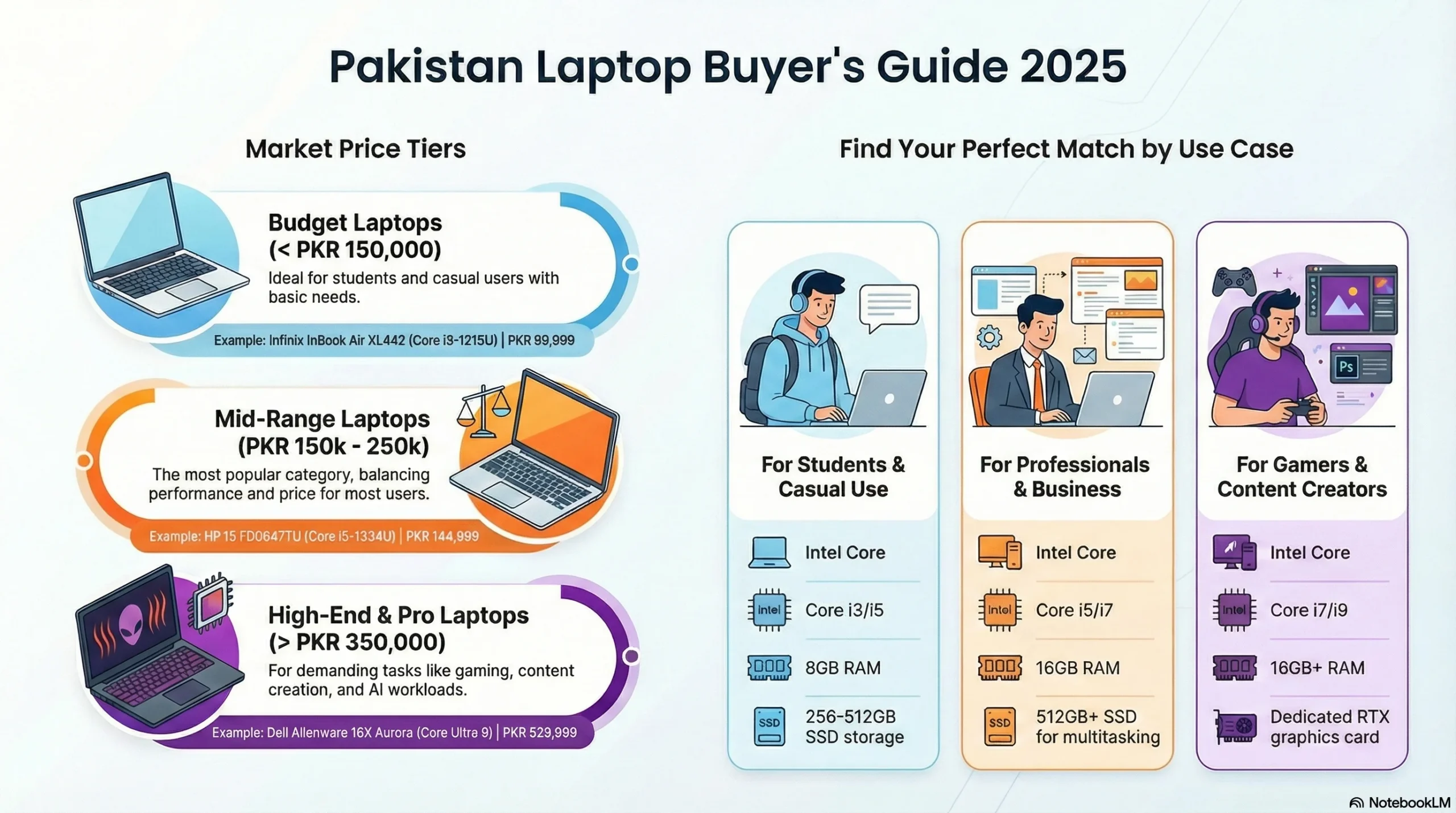 Welcome to our Ultimate Laptop Buying Guide. If you’re looking to buy a new laptop in Pakistan, you’ve come to the right place. The vast number of options can feel overwhelming, with countless brands, confusing model numbers, and technical specs that sound like a foreign language. But don’t worry-this guide is here to help. We’ll simplify the entire process, breaking down prices, top brands, and key components into easy-to-understand language. Our goal is to give you the confidence to choose the perfect laptop that fits your needs and your budget, without the headache.